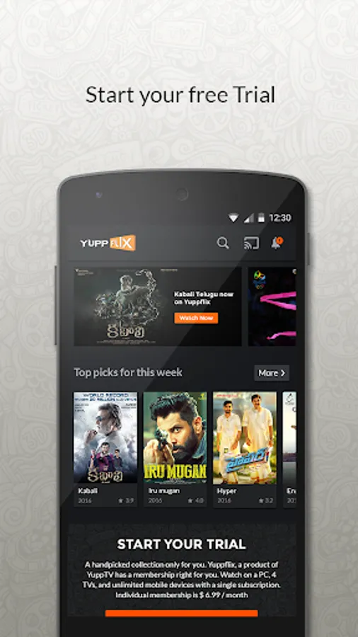 YuppFlix is an on-demand Movie and TV Shows streaming service, backed by its extensive library of more than 3000 movies in 9 languages, Available in more than 50 countries across the globe. Now Watch Movies Legally online on YuppFlix, comes in HD Quality and with English Subtitles. Viewers can choose to get entertained from wide gamut of genres - Comedy, Romance, Devotional, Drama, Action, Thriller & Classic movies.