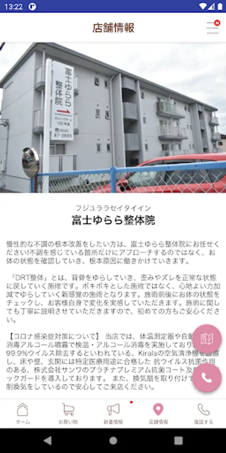 The map of the store is displayed and it is linked with the map app, so you can easily find it even when you visit the store for the first time.