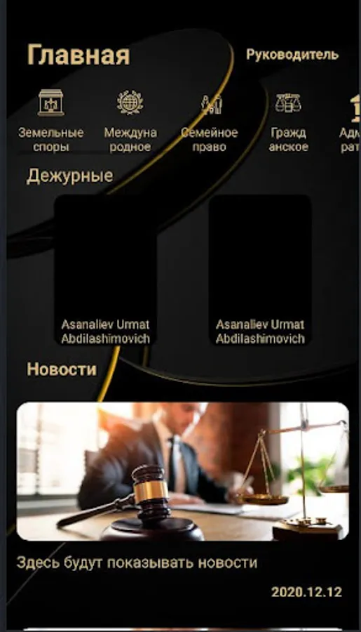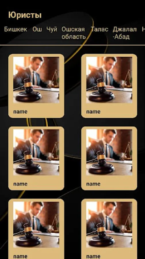 You can find lawyers in our application who will be happy to help you solve your legal problems. The most simple and intuitive interface, with the ability to change the language to: Kyrgyz, Russian, Uzbek, English. Simple application and authorization,