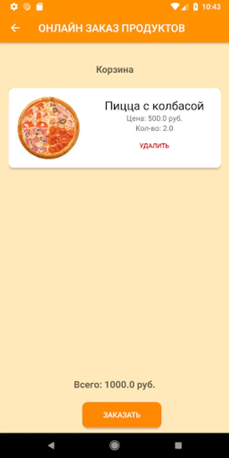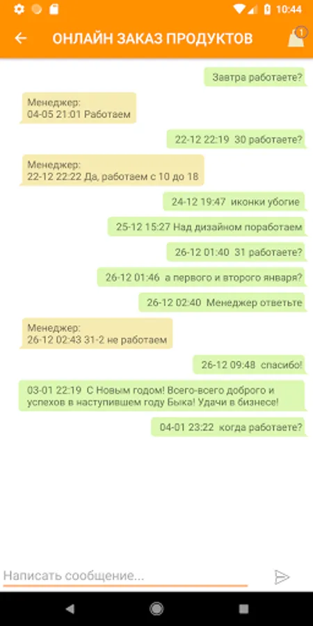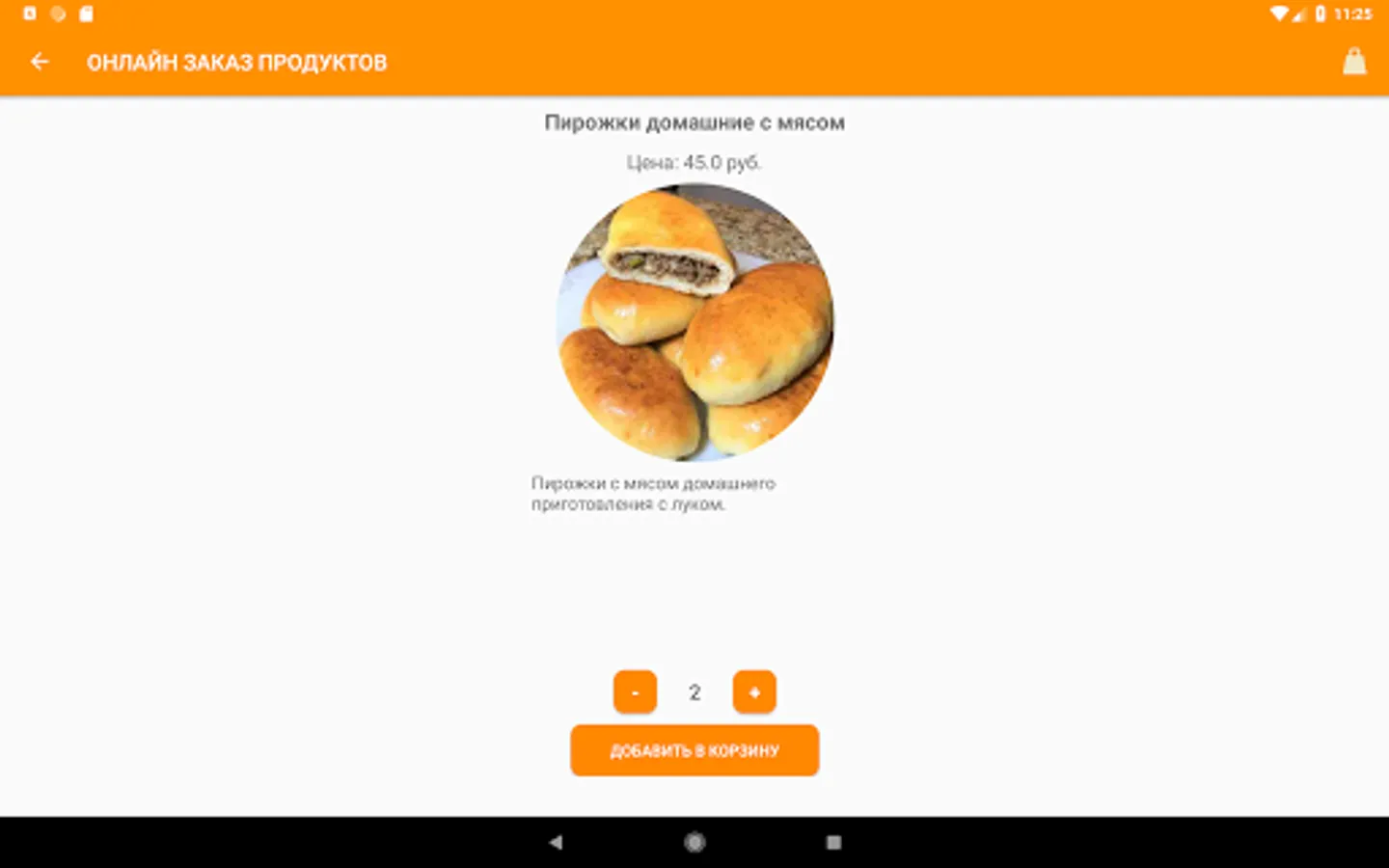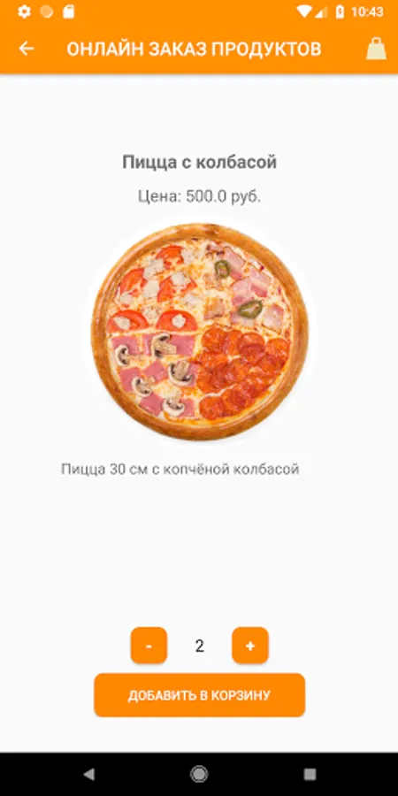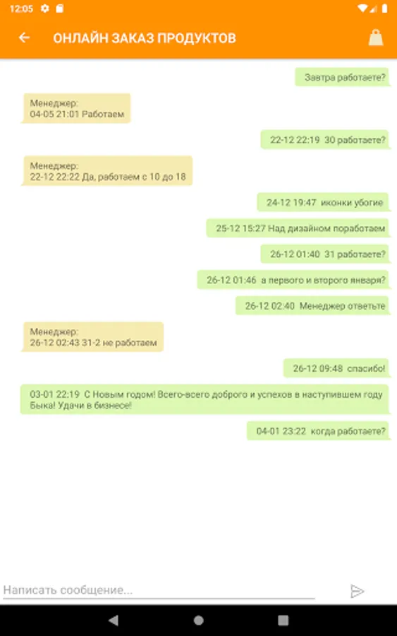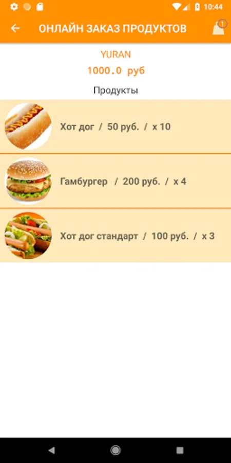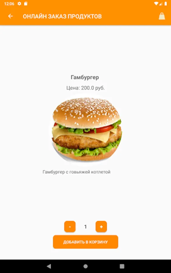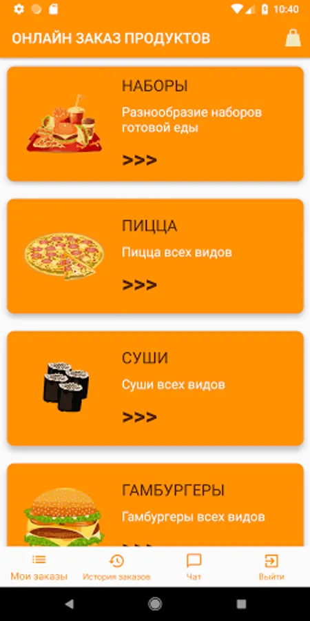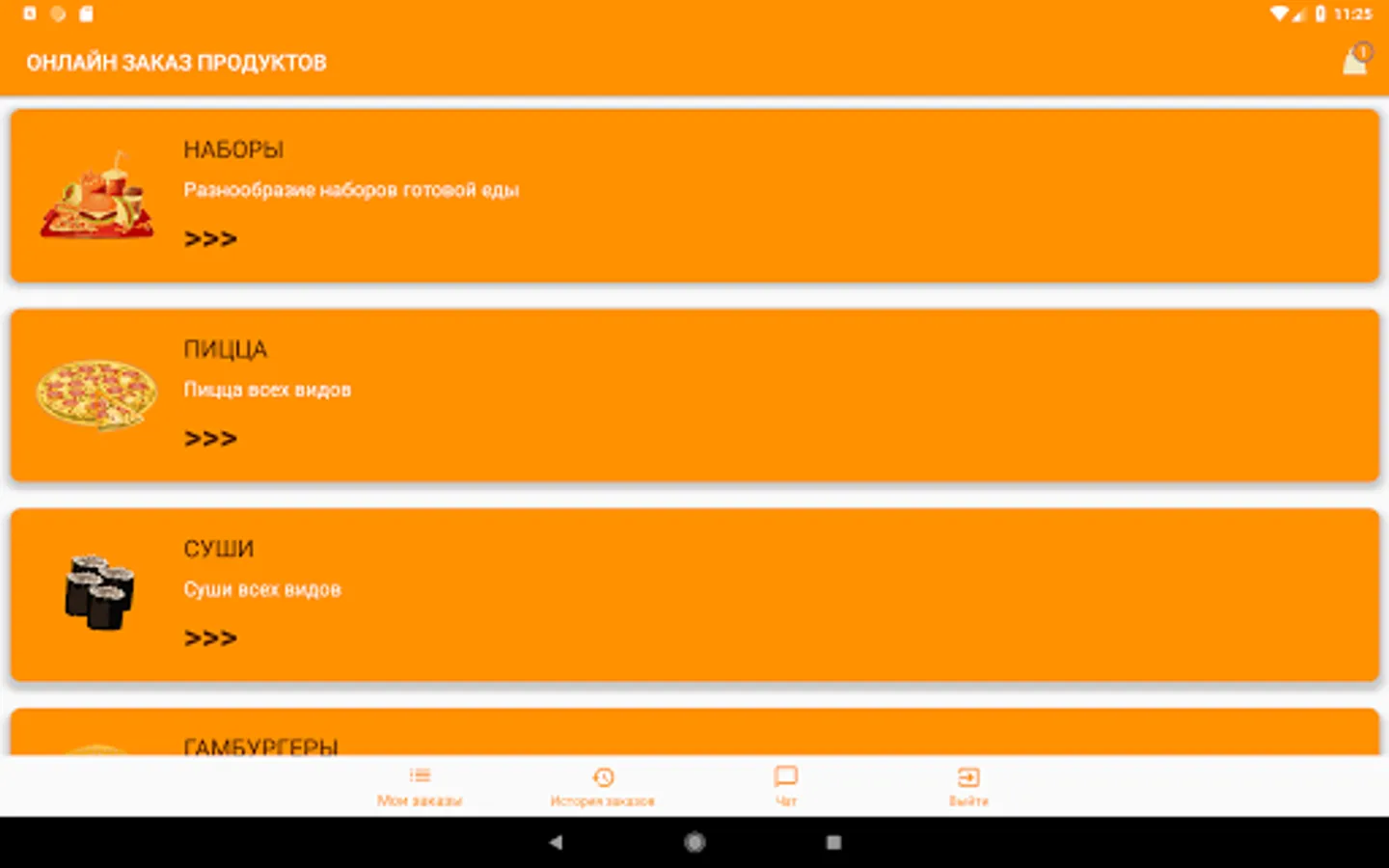 The Orange application is an application for online food ordering via a smartphone, with data on products, orders and users stored in a Firebase database. The selection of products is made by product category. The application has a built-in chat for exchanging messages between users and an online store manager. The application is an information cluster "3 in 1", it consists of the client, manager and admin parts. It is possible to use the application in guest mode.