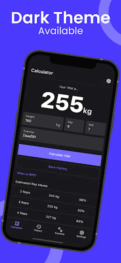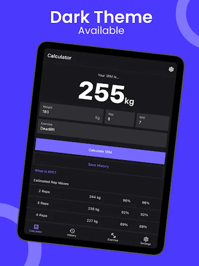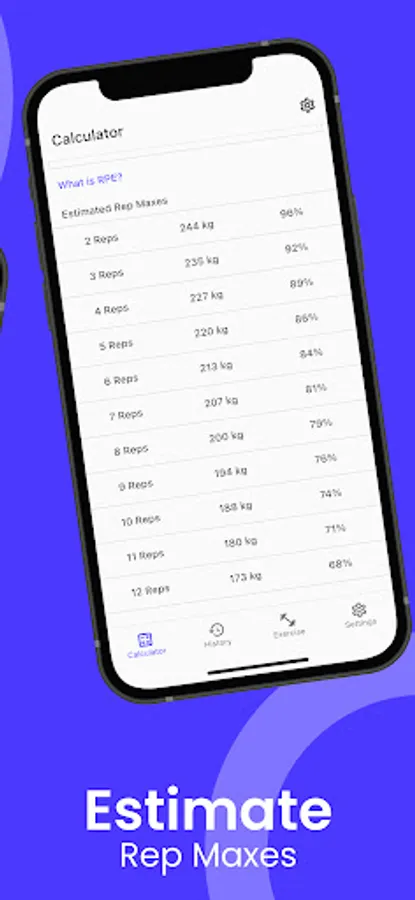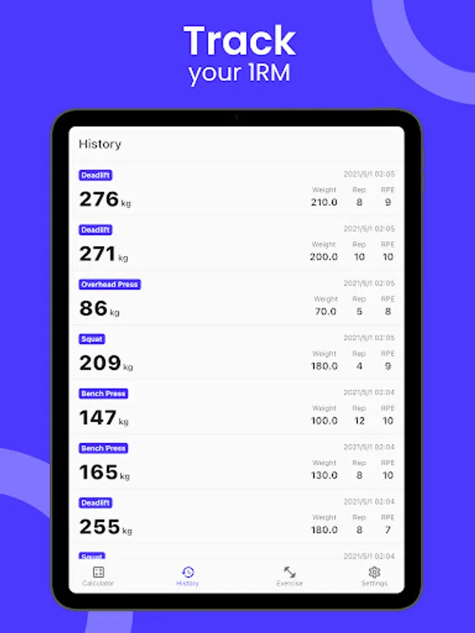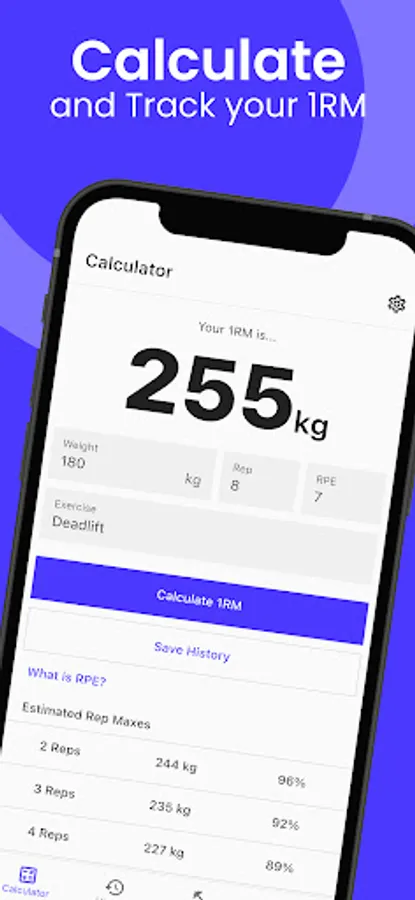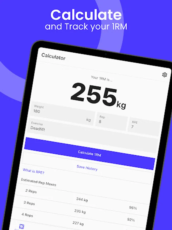 An easy-to-use 1RM calculation app that lets you use RPE and track your 1RM history.