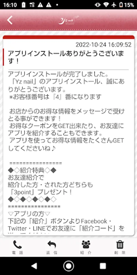 In this app, you can receive the latest information of Yz nail and use useful functions.