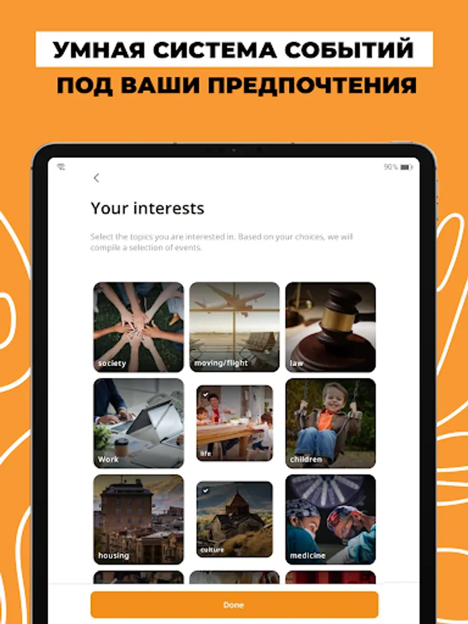 - “My interests” will allow you to receive a selection of events according to your preferences