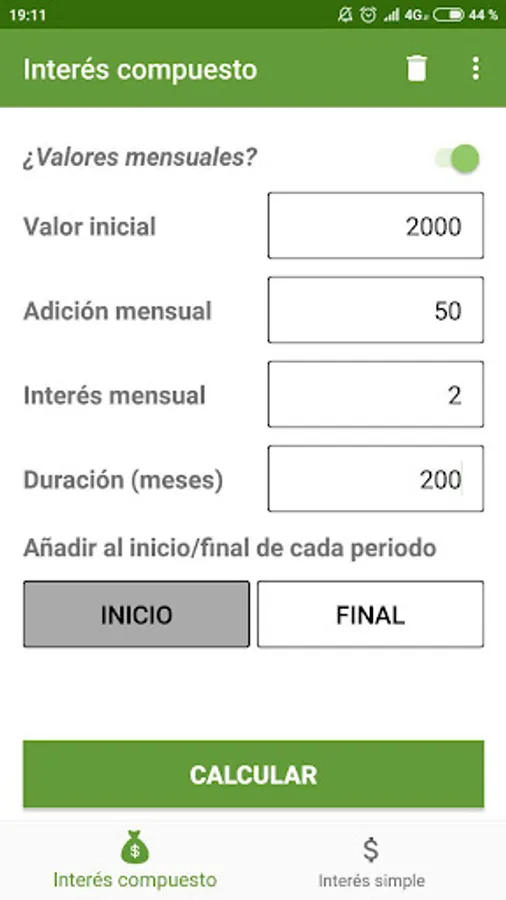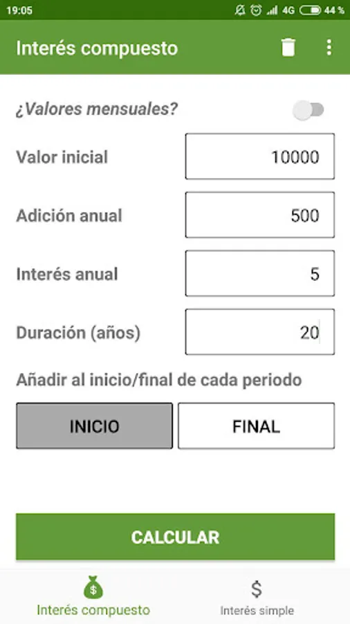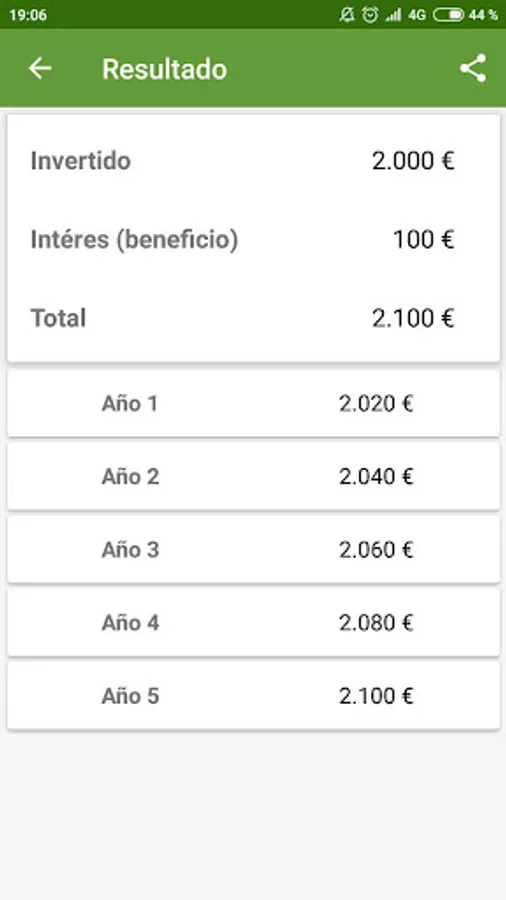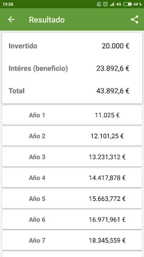 With our interest calculator (compound and simple) you will be able to know the total you are going to earn with your investments in shares, funds... etc.