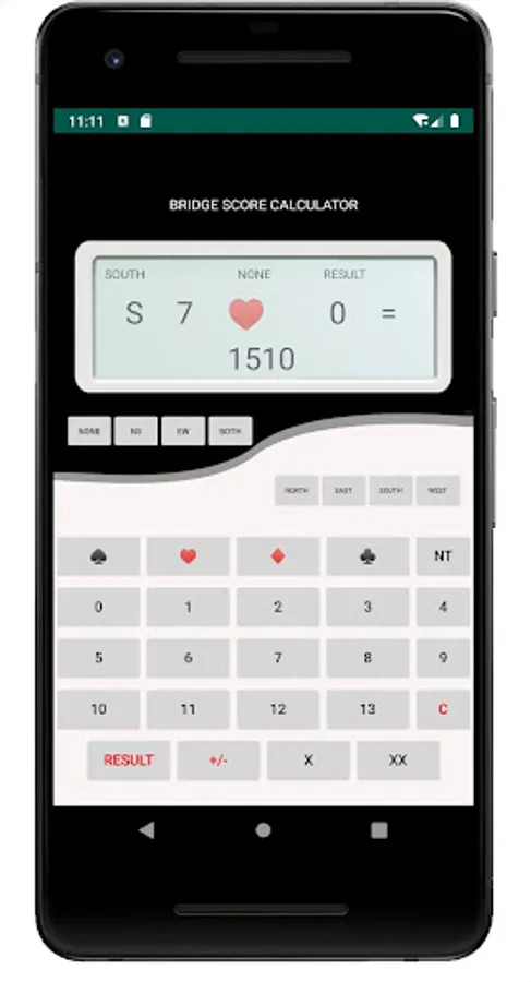 Bridge Score Calculator is a tool for Bridge player, It’s easy to use, just tap Buttons to set Non Vulnerable/Vulerable, contract, result, etc, Score is immediately displayed.
