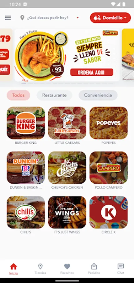 You can order the best brands in Honduras at Home or Take Away: Burger King, Little Caesars, Popeyes, Campero, Dunkin, Baskin Robbins, Chili’s, It’s Just Wings and Circle K.