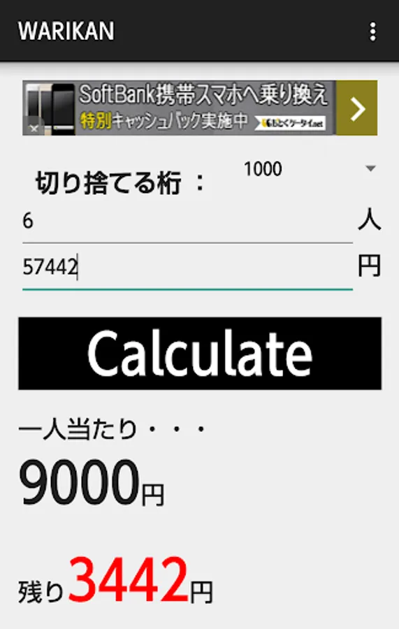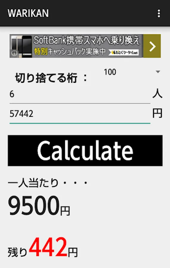 Simply enter the amount and the number of people, truncation to calculate the price of one person,