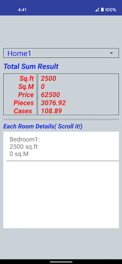* Then VIEW button sums up all rooms and shows up the total.