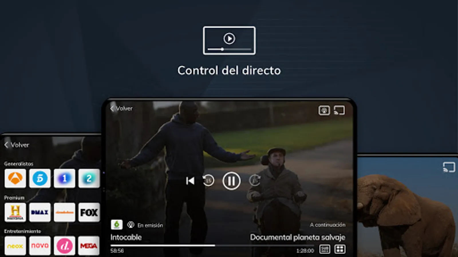 You will be able to pause, rewind, advance and restart any content that is being broadcast live.