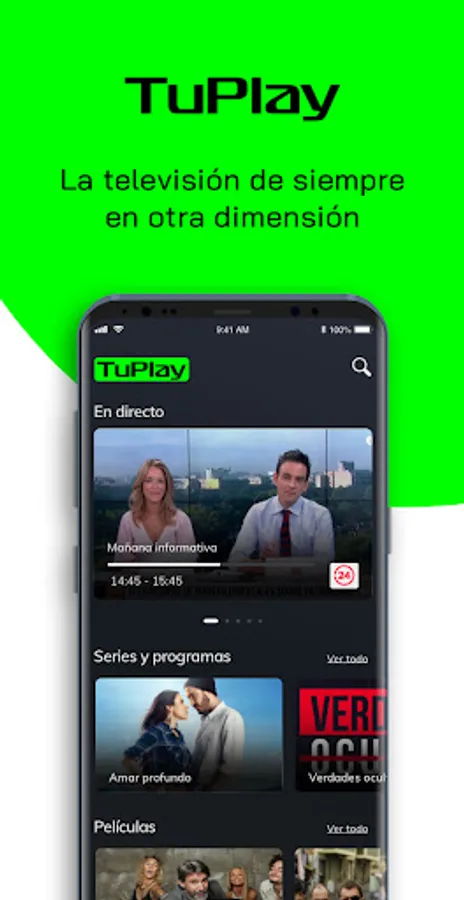 Welcome to TuPlay, the definitive television application to enjoy your favorite programs and channels, in high definition and from wherever you want.