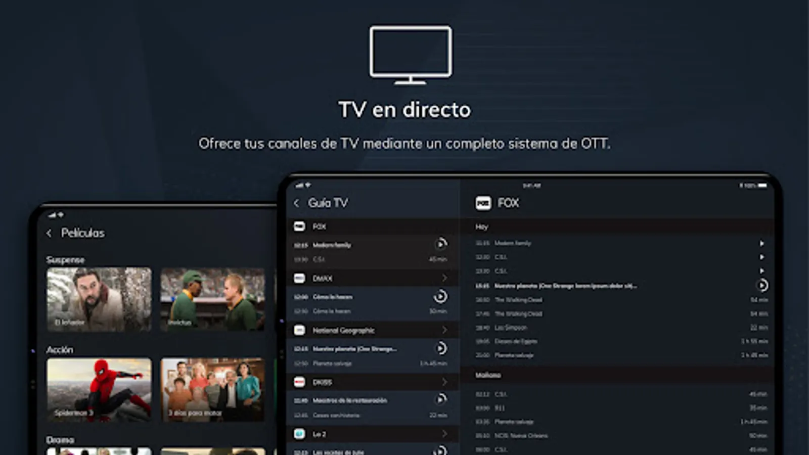 - It allows you to offer your TV on different devices, through a complete OTT system.