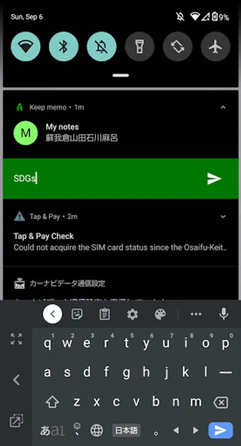 Also, when the power is turned off and restarted, Notepad is automatically displayed on the notification screen.