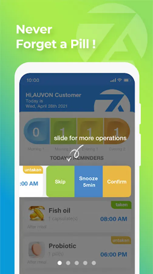 Never waste your time on pill reminding because AUVON is here, free to help.