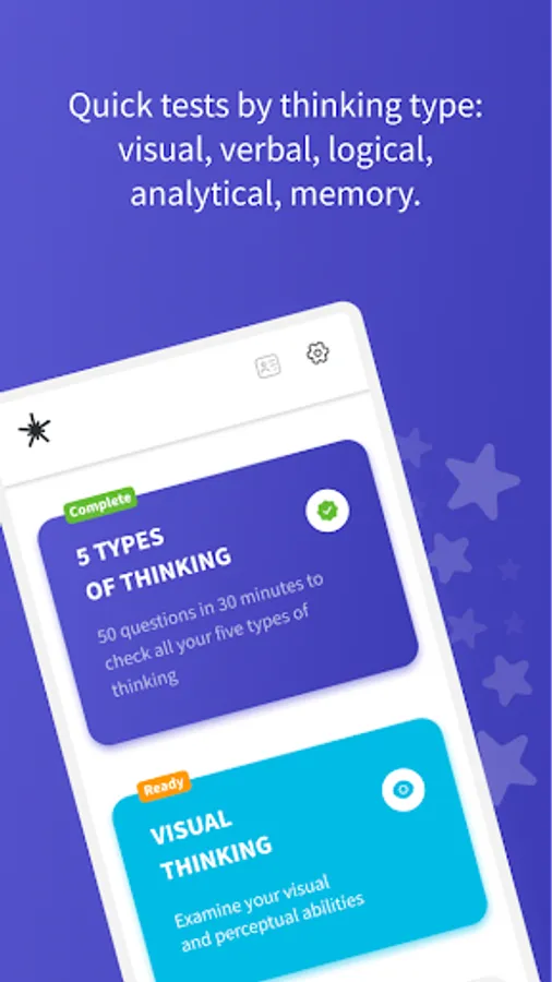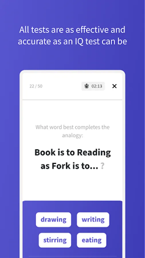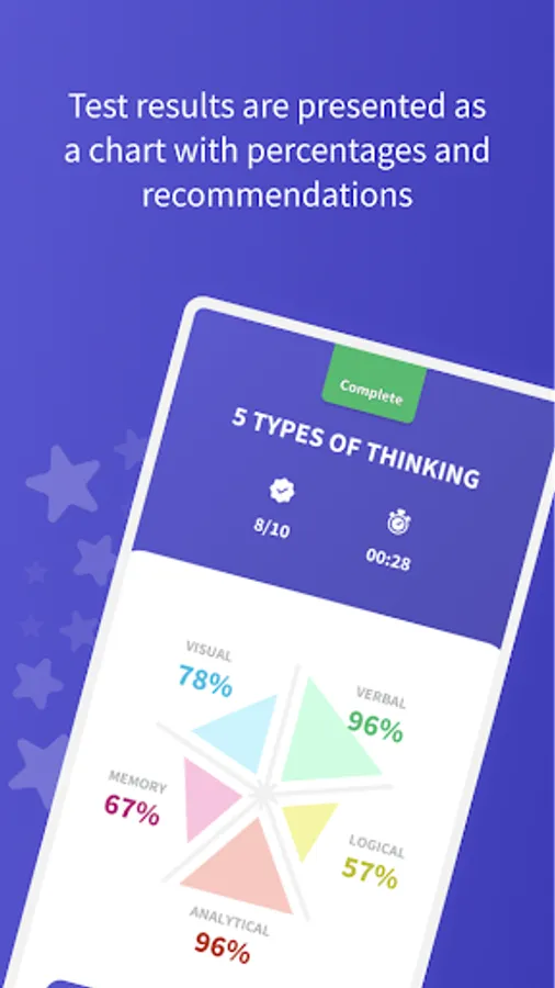 All tests in the app are as effective and accurate as an IQ test can be. Your test results will be presented as a chart with percentages and recommendations.