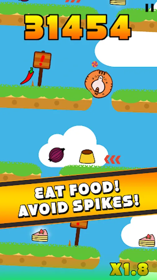Eat food along the platforms to earn more points and coins, but watch out for spikes!