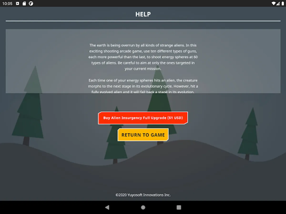 The first 40 missions can be played without limit for free. An in-app purchase gets you the full game, with all eleven guns, 100 missions and 60 aliens. It’s up to you to save the earth, and send them all back to their respective planets.