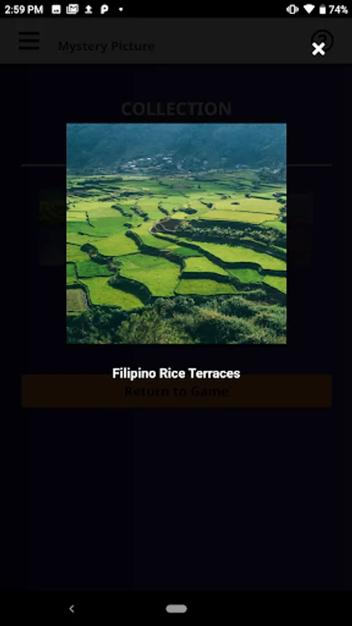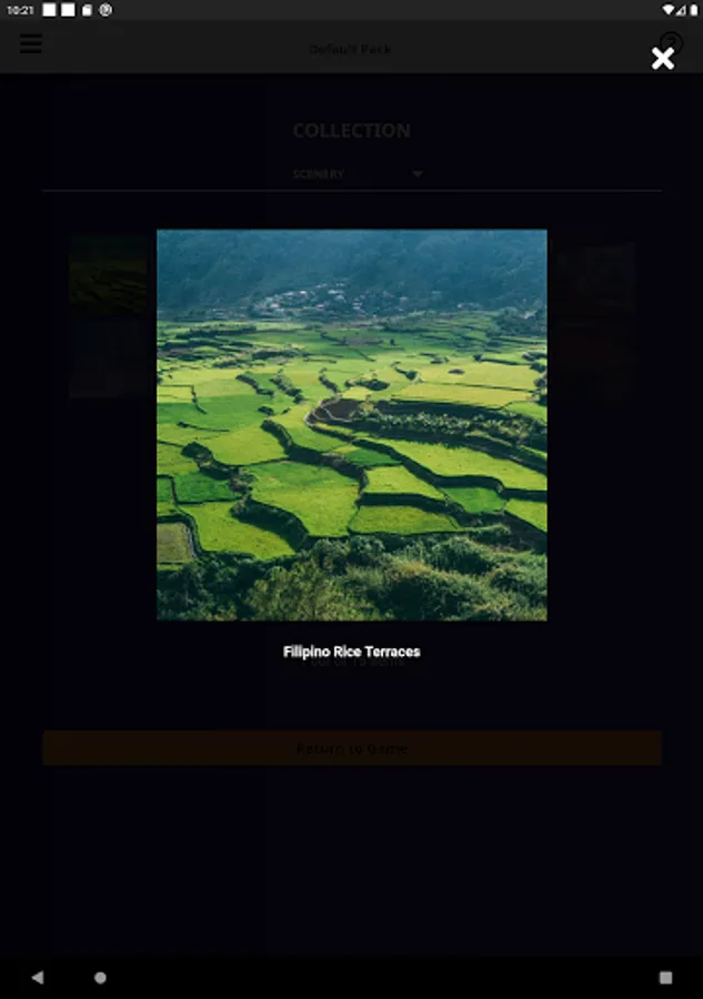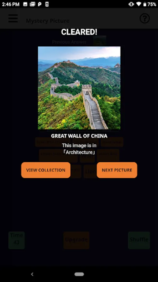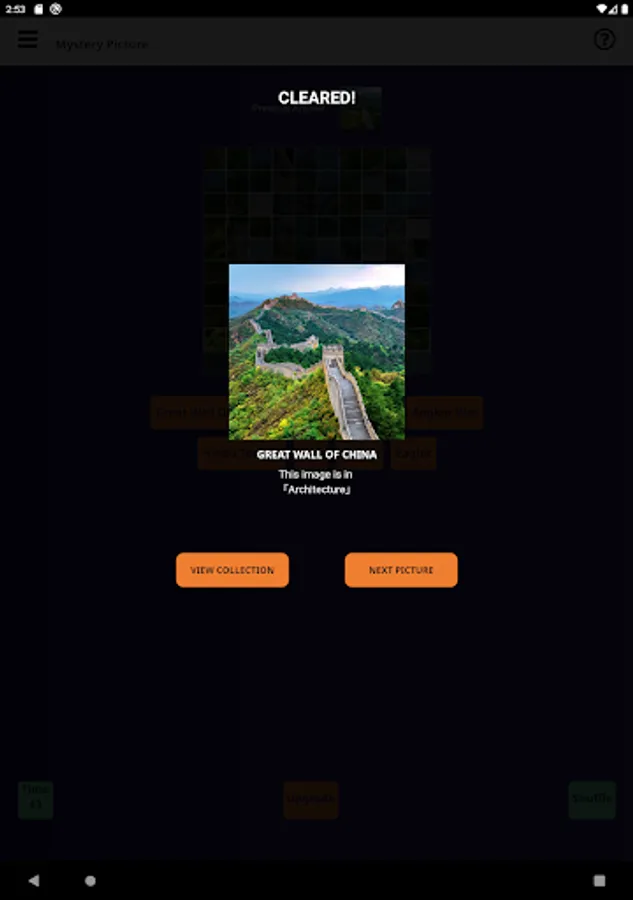 Can you guess what the scrambled picture is? That’s the basis of this highly unusual game. You have to pick the right answer from a list of six clues. Answer correctly, and the picture is added to your collection.