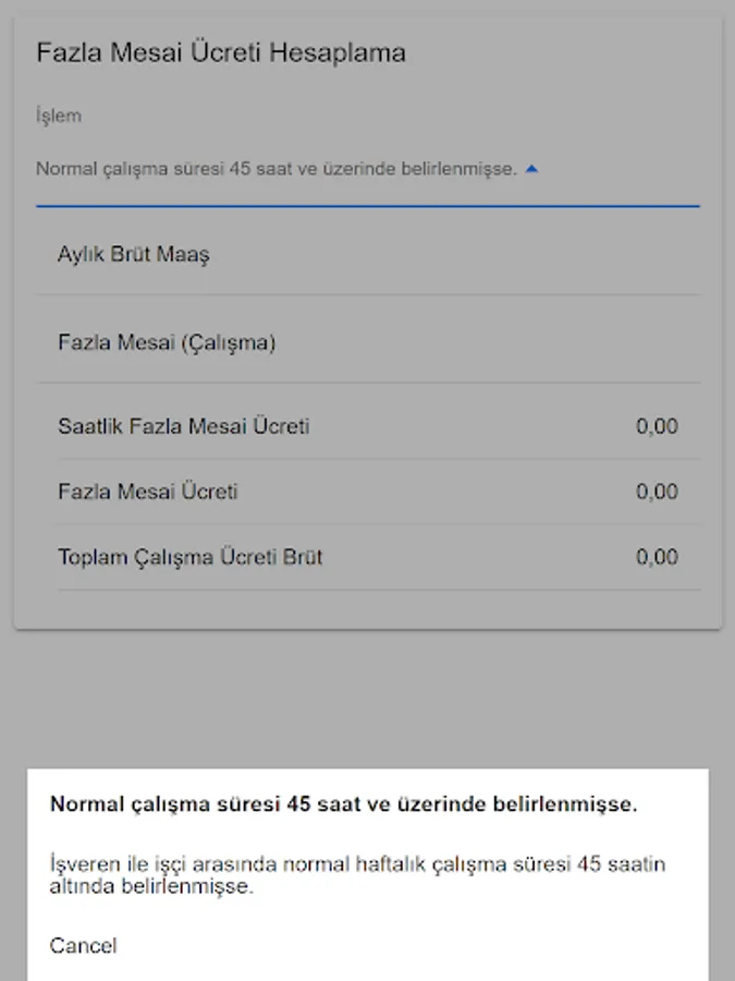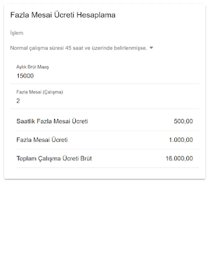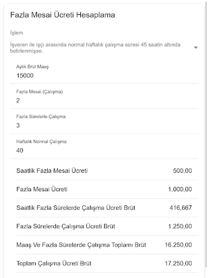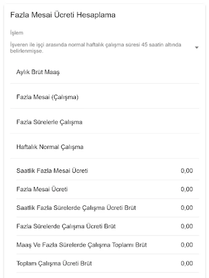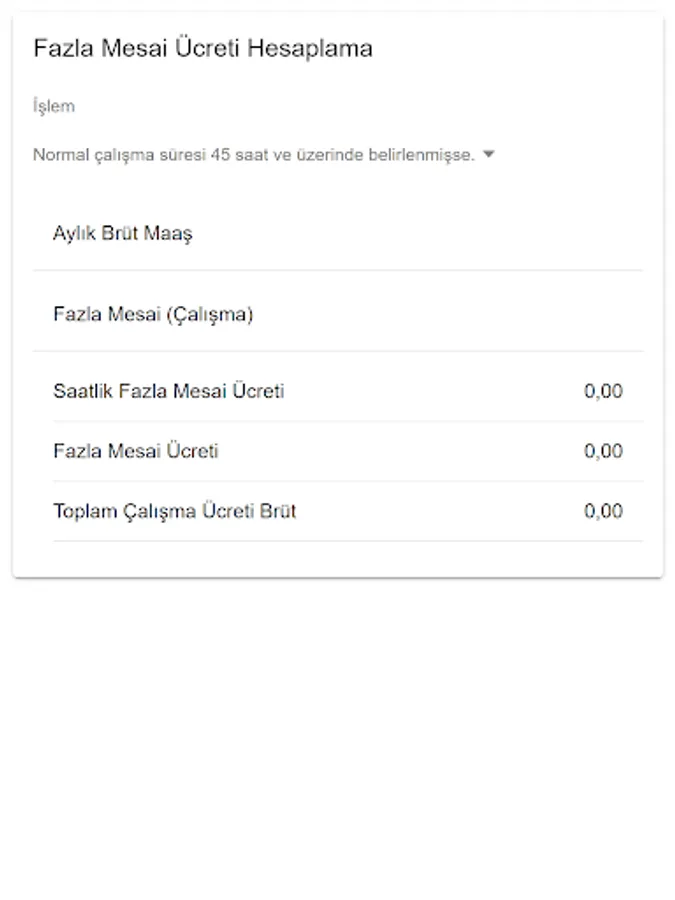 Allows you to calculate overtime wages. This application 'If the normal working time is set to 45 hours or more.' or 'If the normal weekly working time between the employer and the worker is determined to be less than 45 hours.' Calculates options.