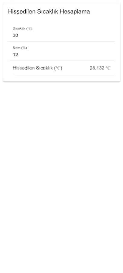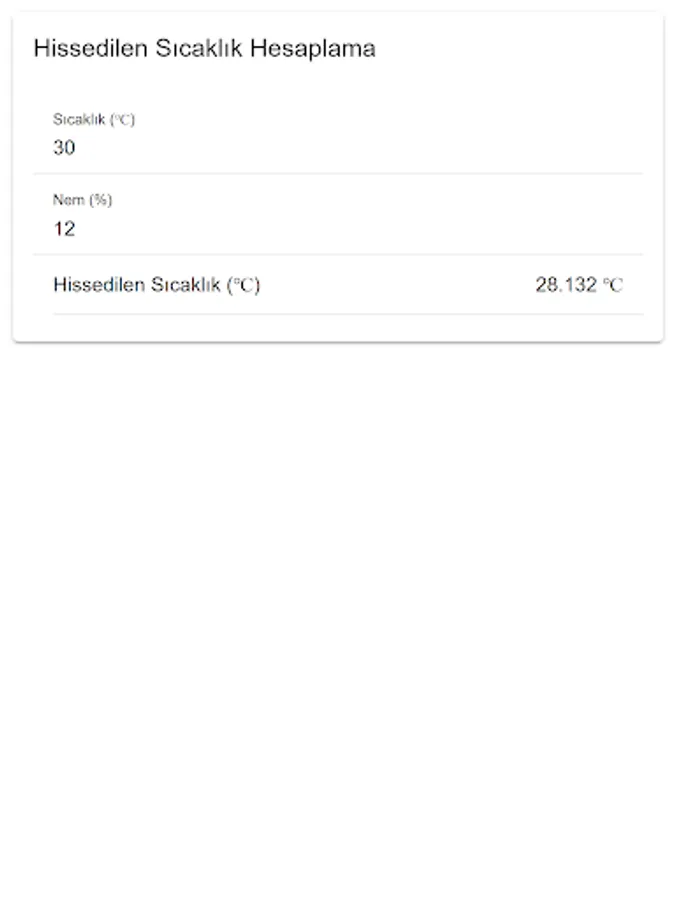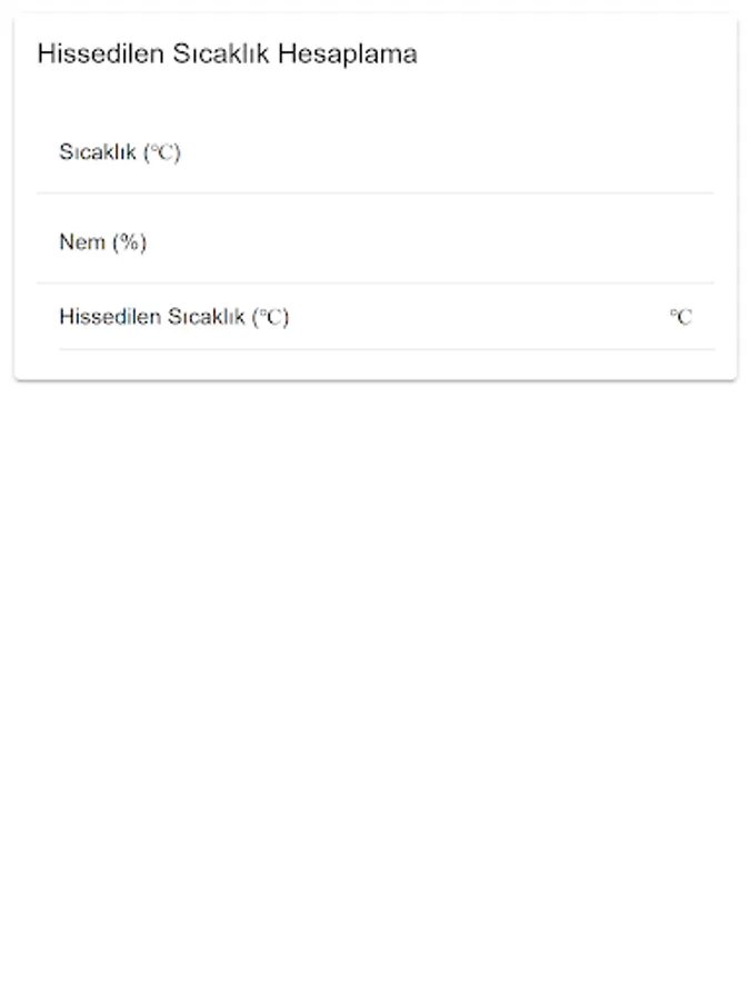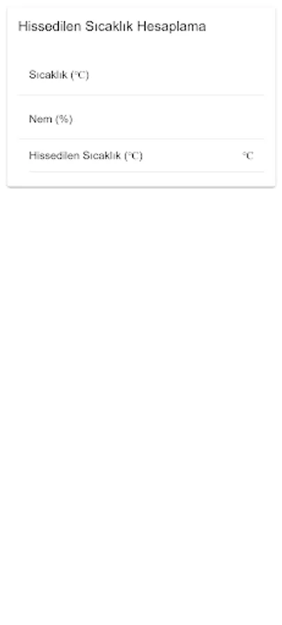 Hissedilen Sıcaklık Hesaplama Screenshots