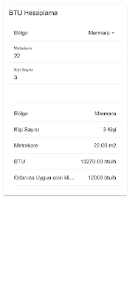 Klima BTU Hesaplama Screenshots