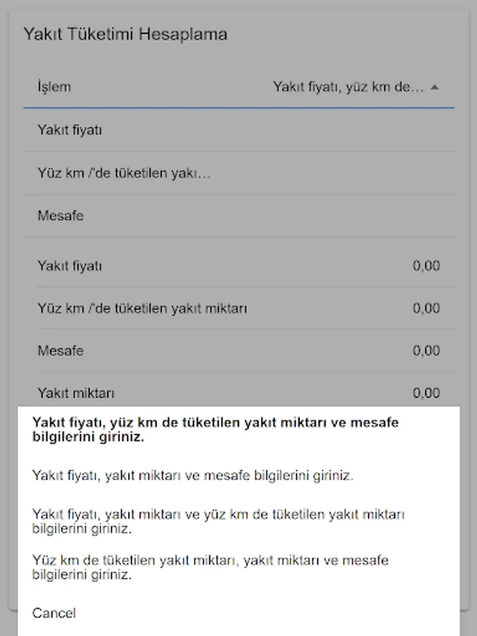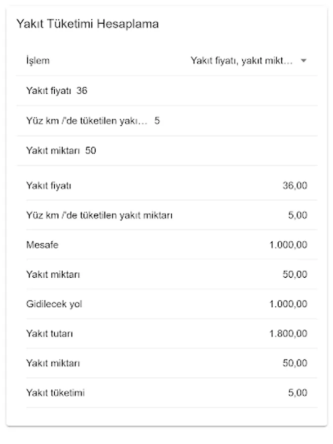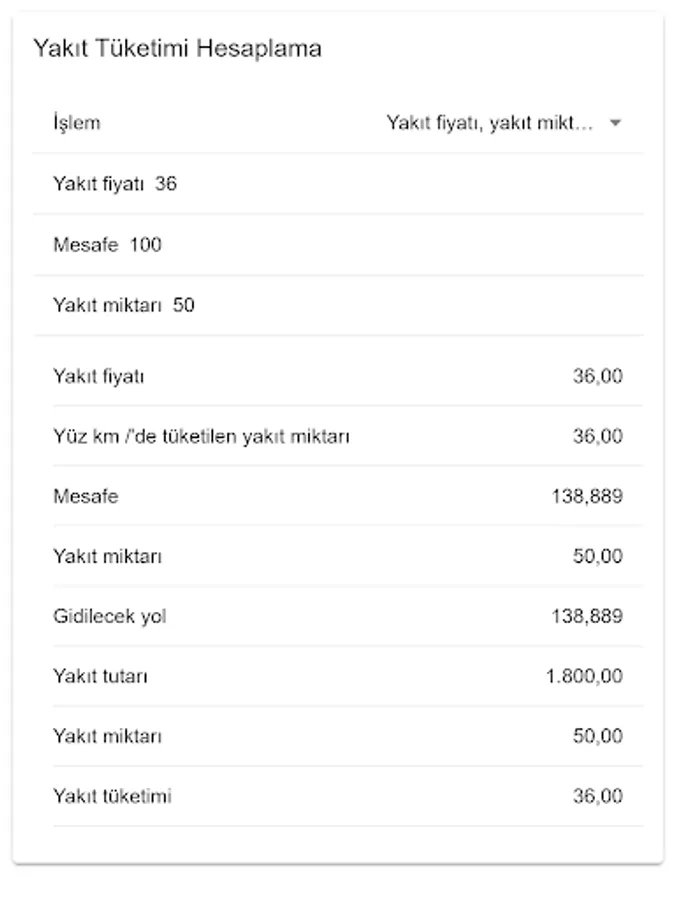 With this application, you can calculate how much fuel your vehicle consumes, or how much fuel you will go to the place you want to reach, or how far you can go with the available fuel.