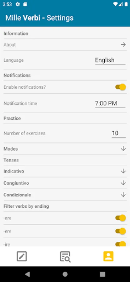 Learn to conjugate verbs in Italian. Practice daily, learn new verbs and have fun learning at your own pace.