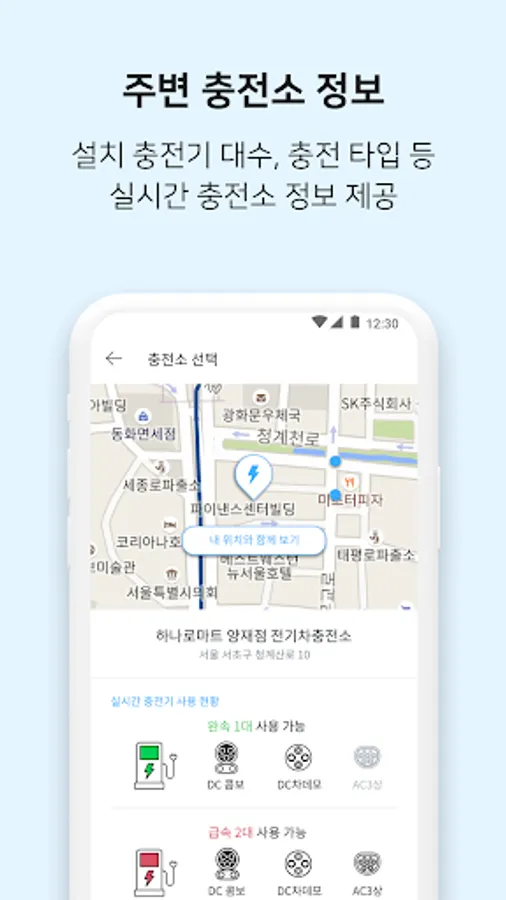 Search for charging stations and charging types near your location