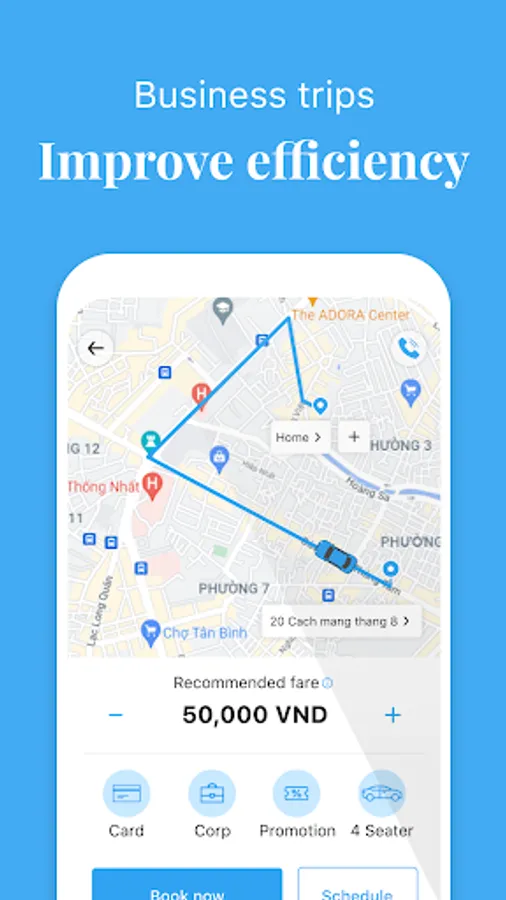 STAR provides 4-seat and 7-seats car services in the Ho Chi Minh region.