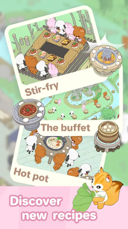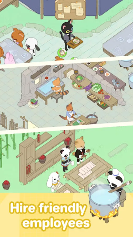 Stay online, and your animal friends will help run the restaurant and collect resources by themselves!