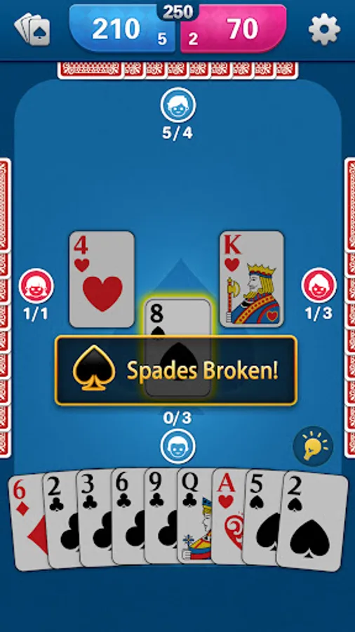Remember, spades are always trump! Using spades wisely is the key to win!