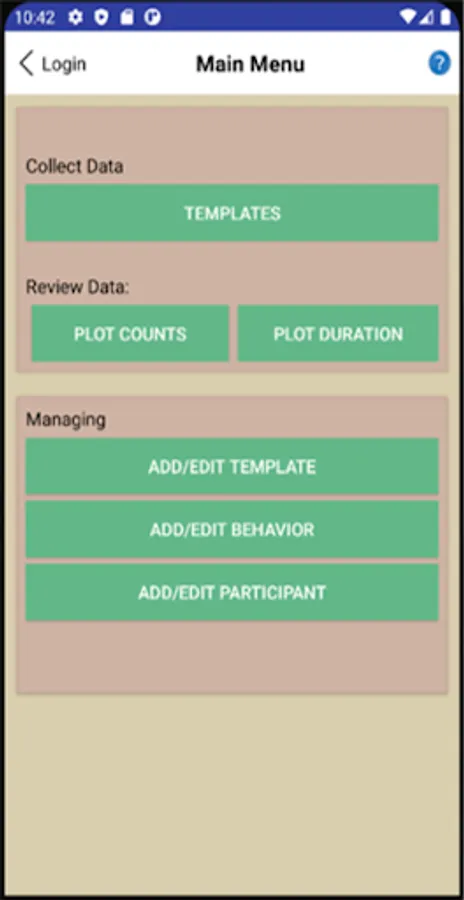 Behavior Data Collection Lite designed for teachers and has only two templates, simple that collects and displays counts and/or durations and interval recording that collects and displays on/off task counts.
