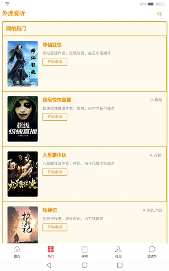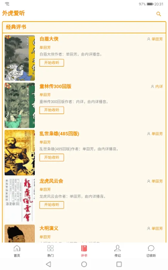 外虎爱听Yholisten-网络各类有声小说和评书收听大全