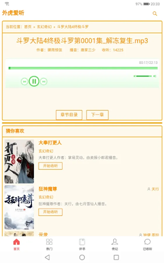 外虎爱听Yholisten-网络各类有声小说和评书收听大全 Screenshots