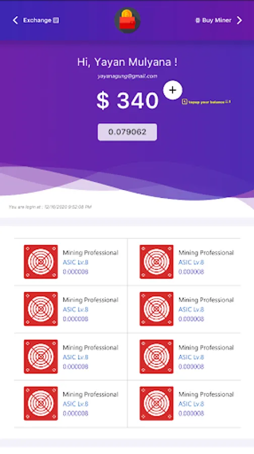 6. Please attention to the purchase in the "Buy a Miner" menu only valid for 1 device only, cannot be moved or changed devices.