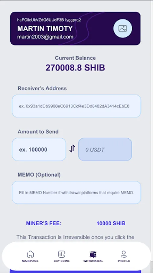 8. To withdraw coins you can choose the third menu or the withdrawal button.