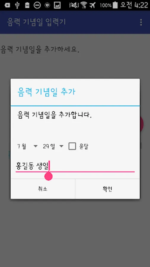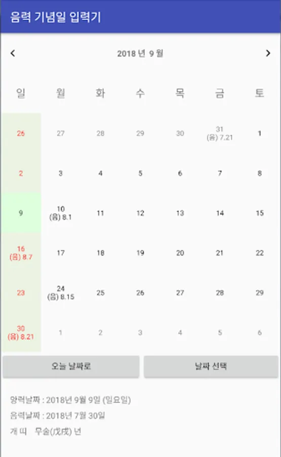 The app individually added to Google Calendar, the lunar day.
