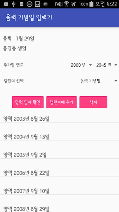2. Delete button in the app to erase only the anniversary is registered.