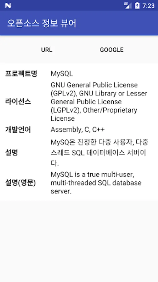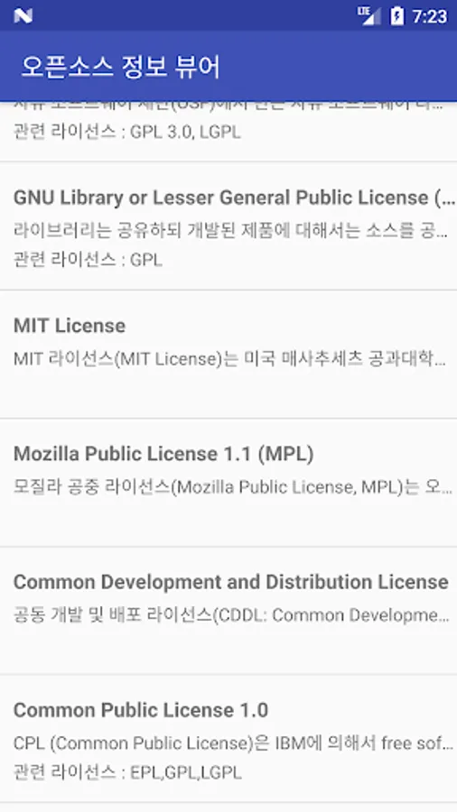 오픈소스 정보 뷰어 Screenshots