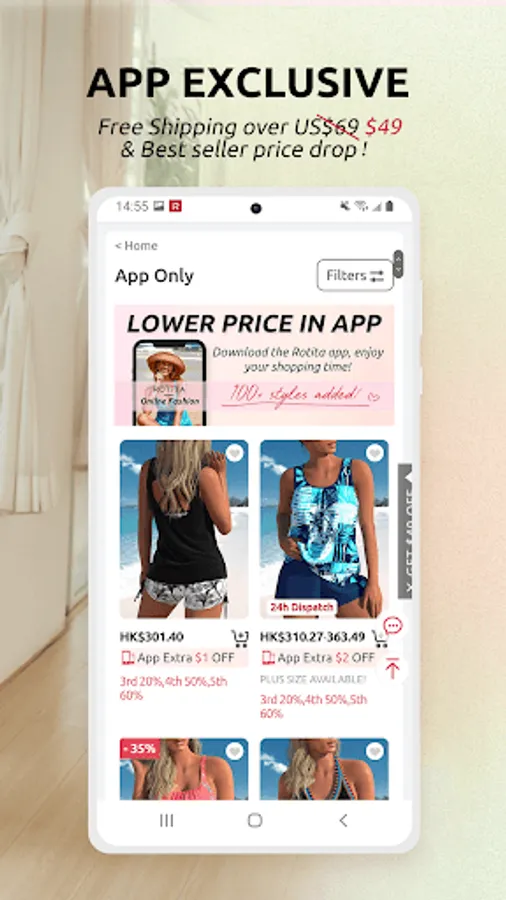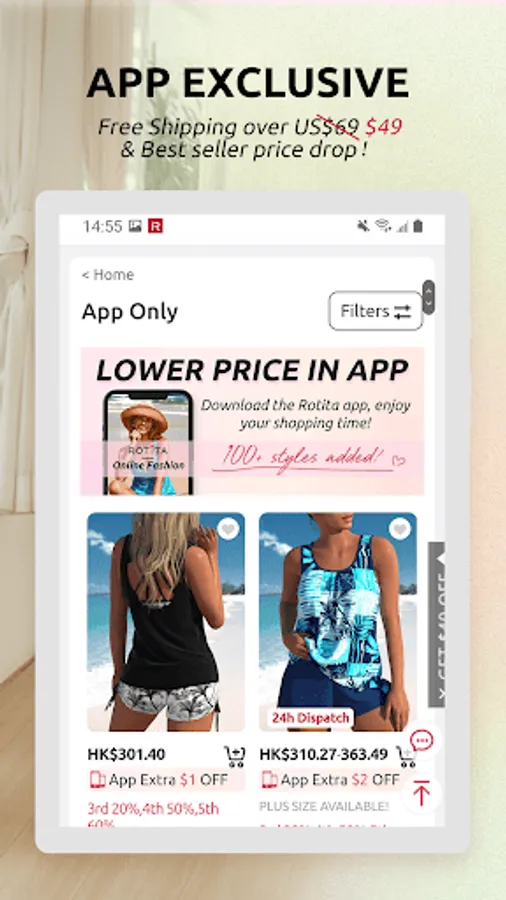 Rotita, a fashion global online shopping platform for women, we pursue a balance of comfort and stylish design on the premise of reasonable pricing. Rotita offers 5000+ unique and ultra-affordable styles including dresses, tops, swimwear, plus size, jewelry and accessories. Regarding us as you one-stop destination for women clothing! We will keep you in the loop with push notifications including coupon and promo. Download the Rotita app now and start your shopping trip!