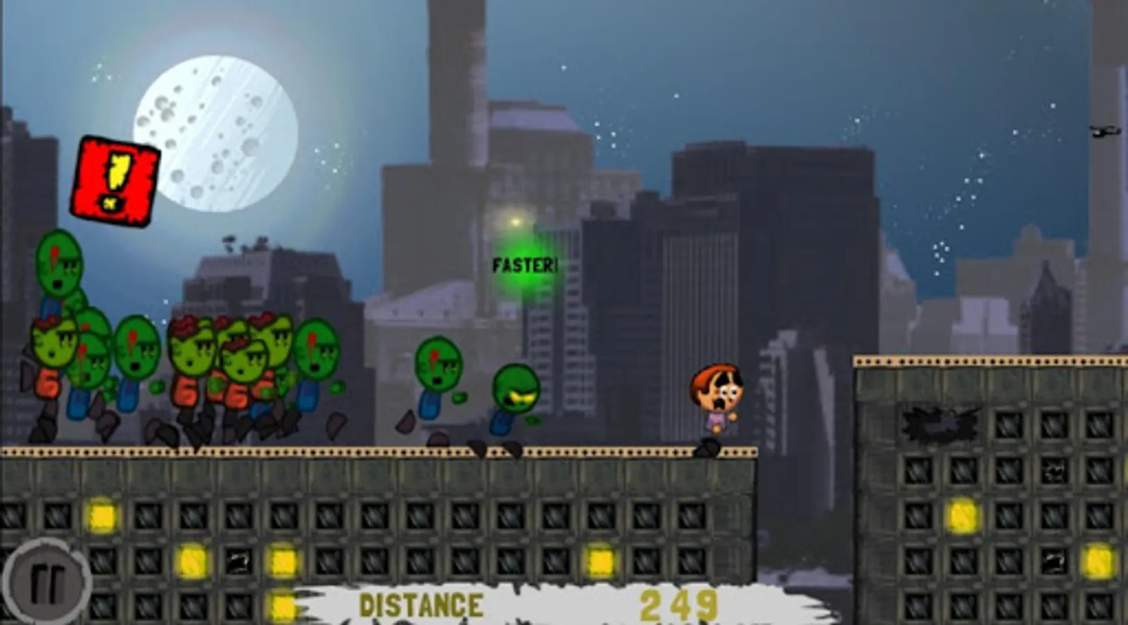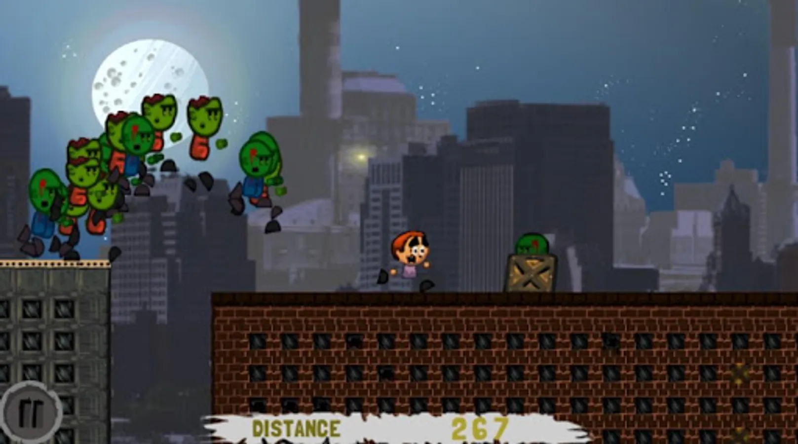 Simply tap to make your hero jump, don't fall down the gaps between buildings, leap over the obstacles, and don't let the undead catch you. Watch out for the psycho zombies - tap to jump over them!