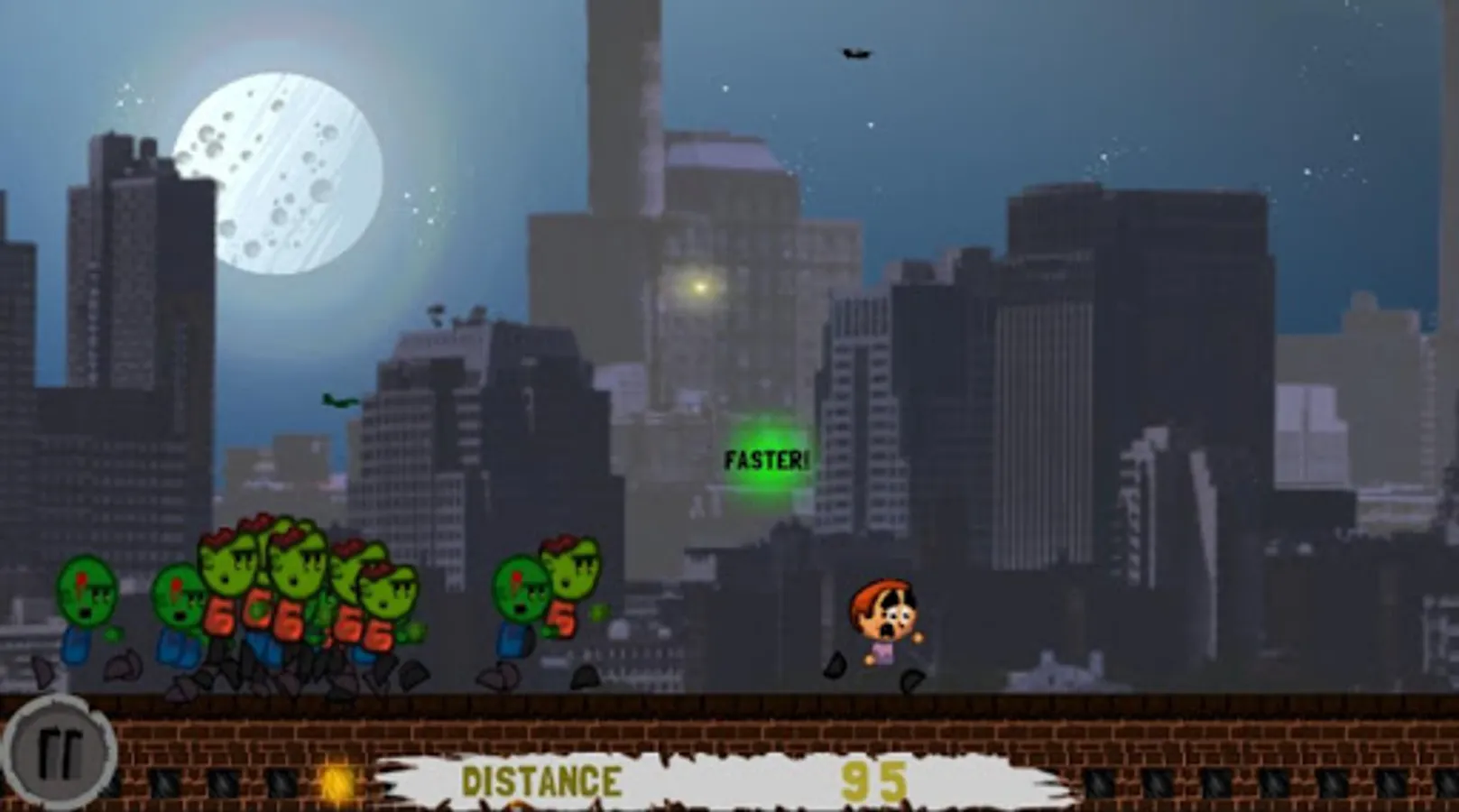 Run away from the zombies! In a unique twist to the runner type of game, you are fleeing a horde of not-so-scary zombies by running across the city rooftops.