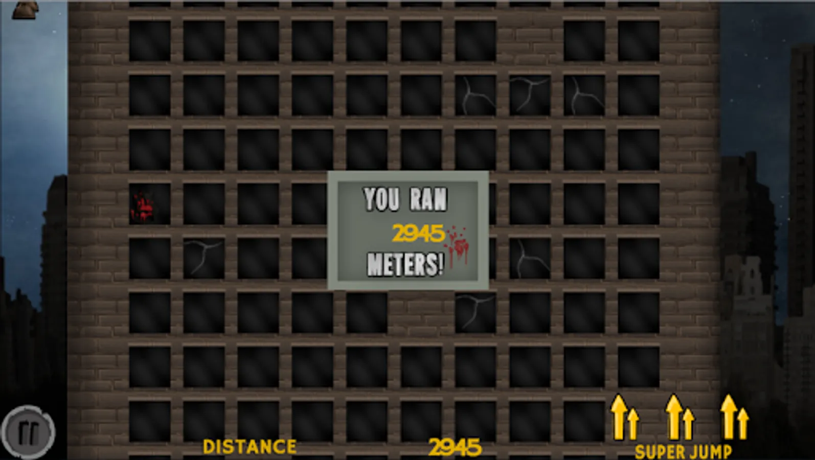 Controls are simple - tap the screen to jump to avoid the zombies. Tap when in mid-air for a super jump - useful to avoid the psycho zombies, big building gaps, or obstacles.