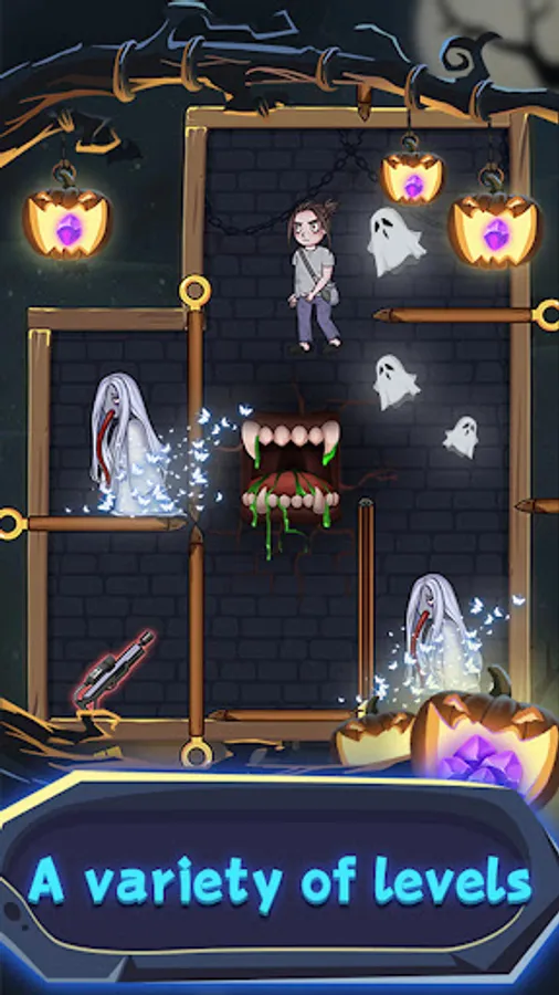 The game 'Lets catch ghost' is a casual and fun game that combines various elements such as needle pulling, puzzle solving, adventure, and haunted houses to catch ghosts and pass levels. As a Taoist here, you will come to the dark cabin and receive rewards by catching ghosts. As your strength increases, you will upgrade your title to receive rewards. In the game, in ghosts, they always appear after 12 o'clock to conquer monsters and monsters in thrilling challenges, and various clothing and props are obtained in the store.
