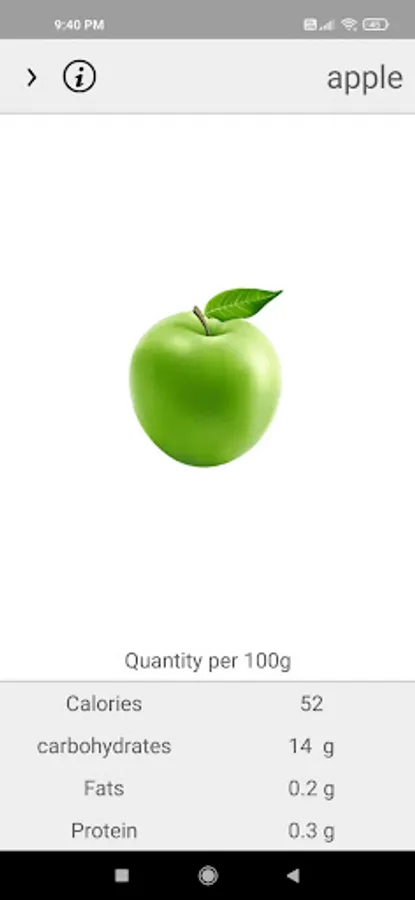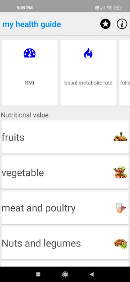 My Health Guide is a guide to foods such as calories, proteins, fats and sugars per 100 grams