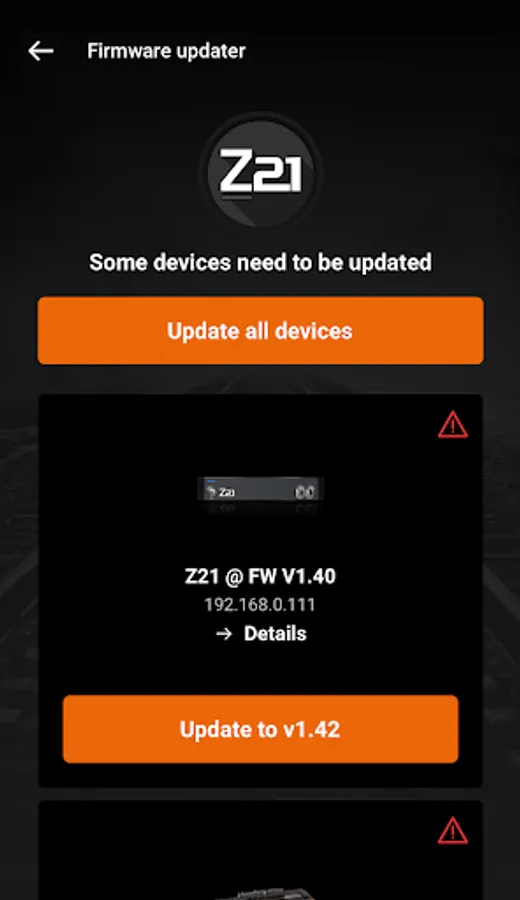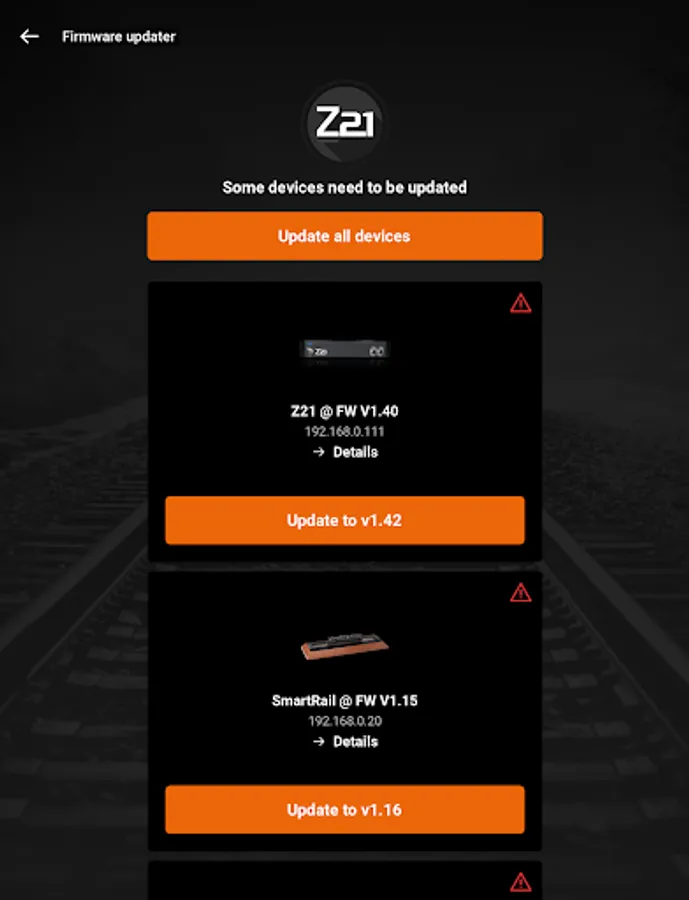 This app allows you to conveniently keep your Z21, z21, z21start and smartRail always up to date.
