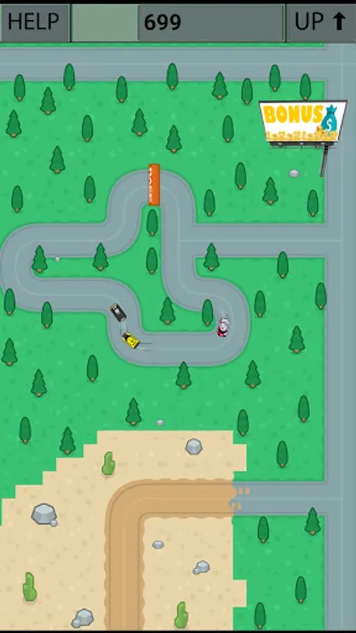 A clicker game in which you have to save money, buy new cars and upgrade the track.