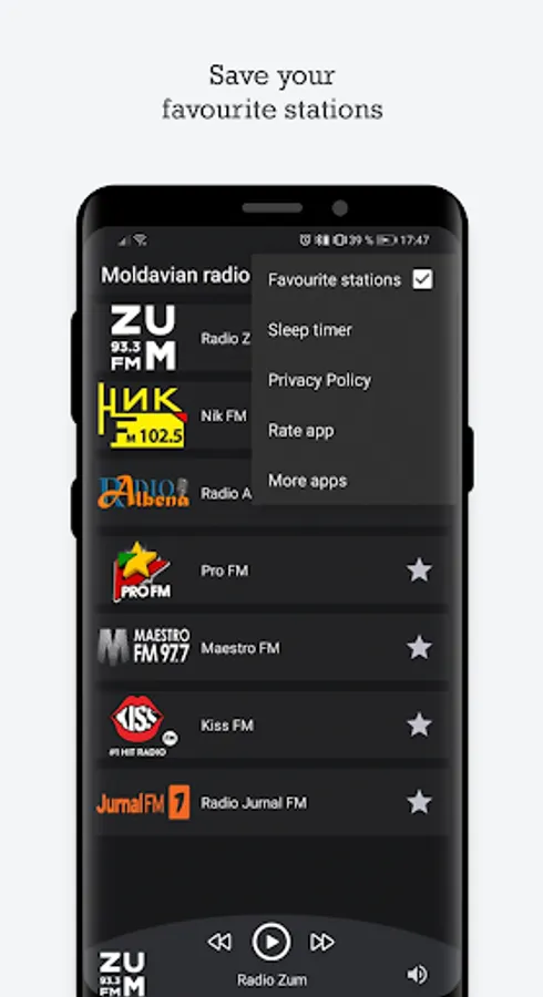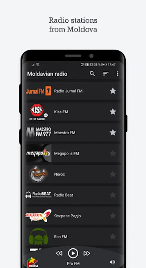 Modern and simple radio app that allows you to listen to more than 30 radio stations from Moldova!