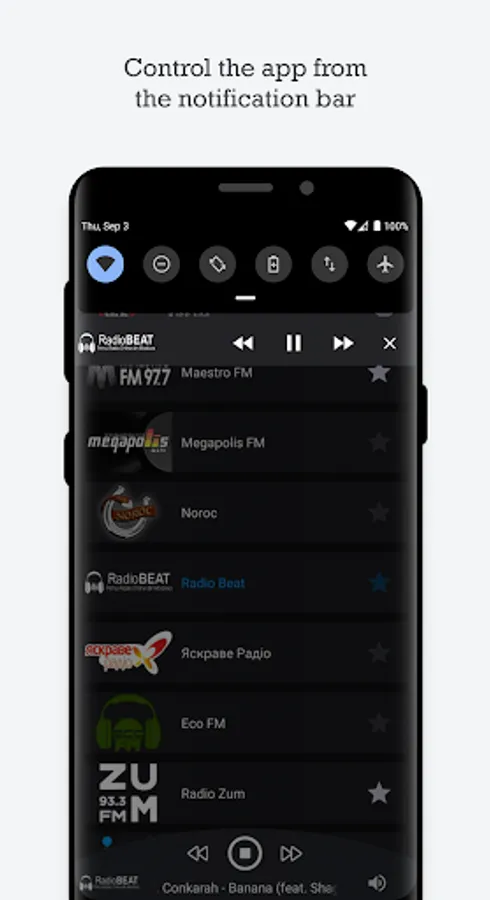 * Control the app from the notification bar.