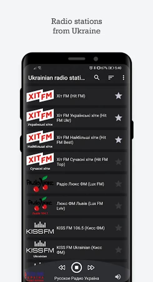 Modern and simple radio app that allows you to listen to more than 150 radio stations from Ukraine!