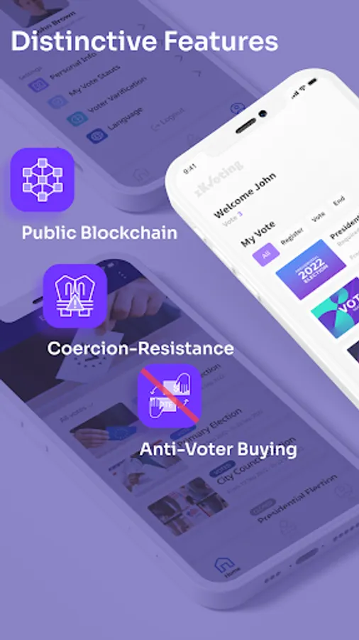 Individual verifiability: zkVoting stores individual votes on a public blockchain, allowing anyone to verify that their votes have been properly placed in the ballot box.
